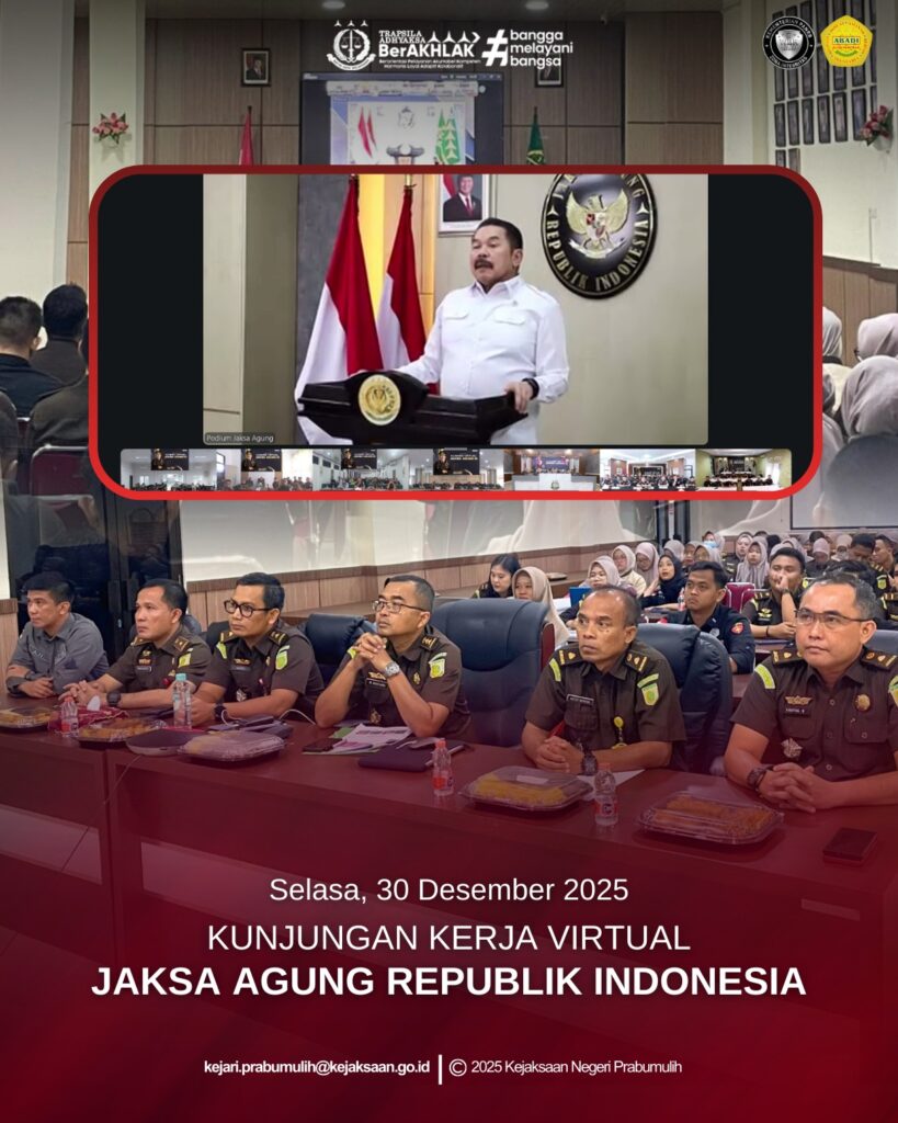 Bertempat di Aula Kantor Kejaksaan Negeri Prabumulih, Plh. Kepala Kejaksaan Negeri Prabumulih Bapak Muhammad Gandara, S.H., M.H., bersama para Kepala Seksi serta seluruh pegawai Kejaksaan Negeri Prabumulih mengikuti Kunjungan Kerja Virtual Jaksa Agung Republik Indonesia.