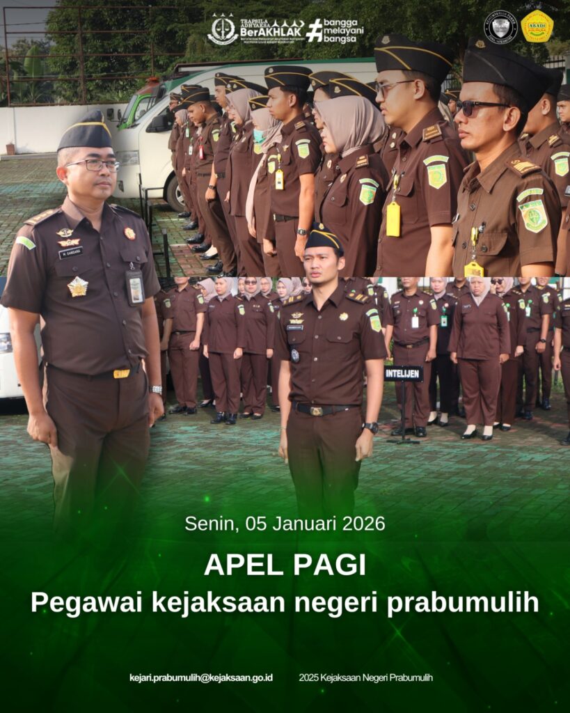 Bertempat di halaman Kantor Kejaksaan Negeri Prabumulih, Plh. Kepala Kejaksaan Negeri Prabumulih Bapak Muhammad Gandara, S.H., M.H., memimpin Apel Rutin Senin Pagi yang diikuti oleh para Kepala Seksi dan seluruh pegawai di lingkungan Kejaksaan Negeri Prabumulih.