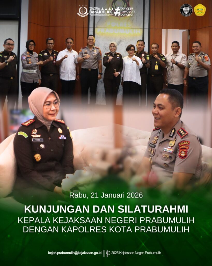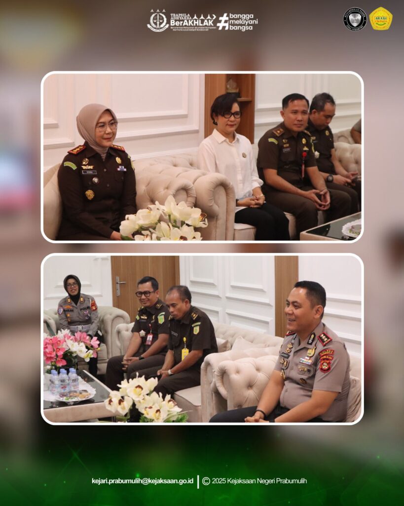 Kepala Kejaksaan Negeri Prabumulih Ibu Asvera Primadona, S.H., M.H., beserta para Kepala Seksi dan Kasubagbin Kejaksaan Negeri Prabumulih melaksanakan silaturahmi ke Kapolres Prabumulih dan disambut langsung oleh Kapolres Prabumulih Bapak AKBP Bobby Kusumawardhana, S.H., S.I.K., M.Si., beserta jajaran.