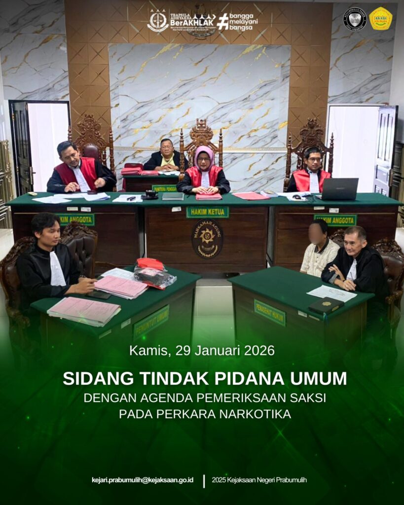 Bertempat di Pengadilan Negeri Prabumulih telah dilaksanakan Sidang Perkara Tindak Pidana Umum dengan Agenda Pemeriksaan Saksi pada Perkara Narkotika.