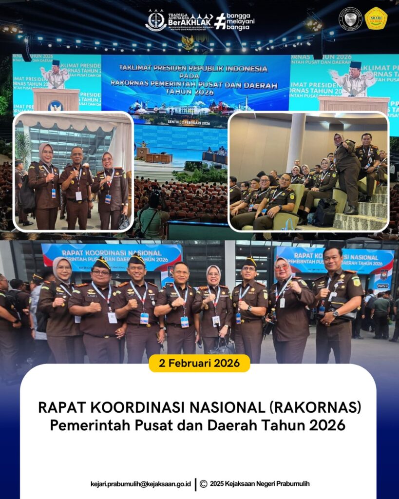 Kepala Kejaksaan Negeri Prabumulih Ibu Asvera Primadona, S.H., M.H., menghadiri kegiatan RAPAT KOORDINASI NASIONAL (RAKORNAS)Pemerintah Pusat dan Daerah Tahun 2026 yang dilaksanakan di Sentul dan dihadiri langsung oleh Presiden Republik Indonesia, Bapak Prabowo Subianto.