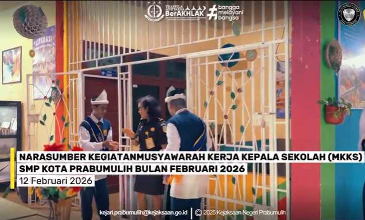Bertempat di Aula SMP Negeri 2 Prabumulih, Kepala Seksi Perdata dan Tata Usaha Negara Kejaksaan Negeri Prabumulih, Ibu Erwina Mea Dimatnusa, S.H., M.H., menjadi narasumber pada kegiatan Musyawarah Kerja Kepala Sekolah (MKKS) SMP Kota Prabumulih bulan Februari 2026.