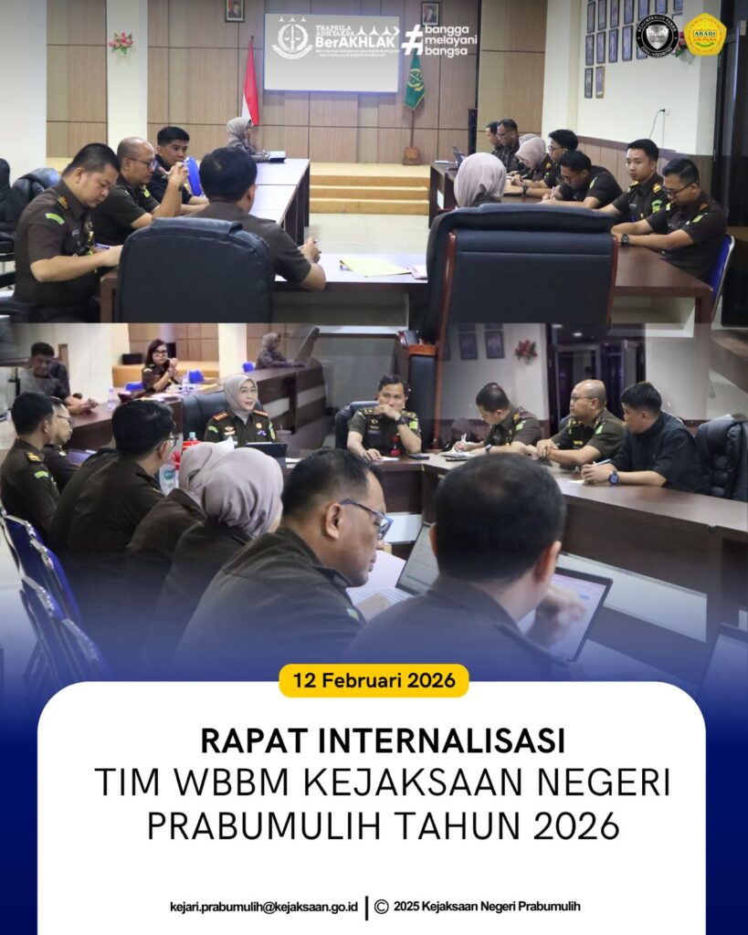 Rapat ini dilaksanakan sebagai upaya penguatan komitmen bersama dalam mewujudkan zona integritas menuju Wilayah Birokrasi Bersih dan Melayani, serta meningkatkan kualitas pelayanan publik yang profesional, akuntabel, dan berintegritas di lingkungan Kejaksaan Negeri Prabumulih.