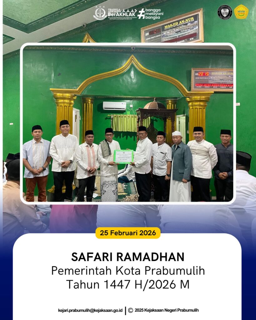 Bertempat di Masjid An-Nur Perumnas Arda Bukit Indah, Kepala Seksi Tindak Pidana Khusus Kejaksaan Negeri Prabumulih Bapak Volanda Azis Saleh, S.H., S.E., M.H., menghadiri undangan kegiatan Safari Ramadhan yang diselenggarakan oleh Pemerintah Kota Prabumulih.