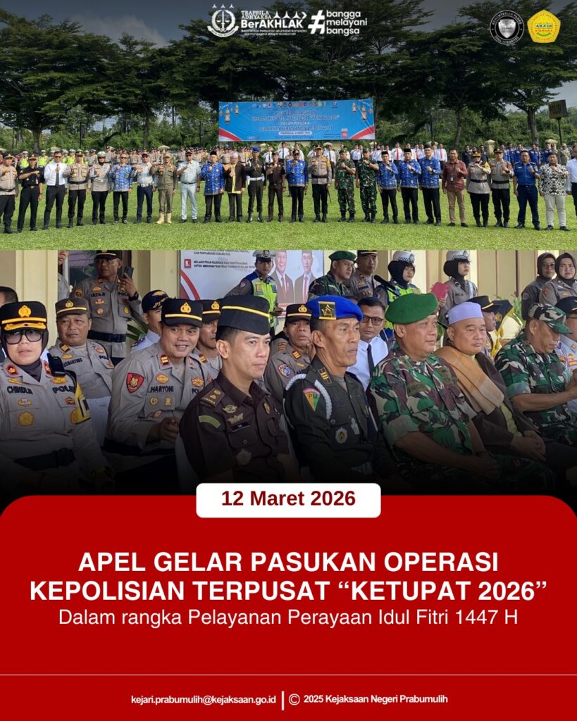 Bertempat di Lapangan Apel Polres Prabumulih, Kepala Kejaksaan Negeri Prabumulih yang diwakili oleh Kepala Seksi Intelijen Kejaksaan Negeri Prabumulih Bapak Ajie Martha, S.H., menghadiri undangan kegiatan Apel Gelar Pasukan Operasi Kepolisian Terpusat “Ketupat 2026” dalam rangka pengamanan dan pelayanan perayaan Idul Fitri 1447 H.