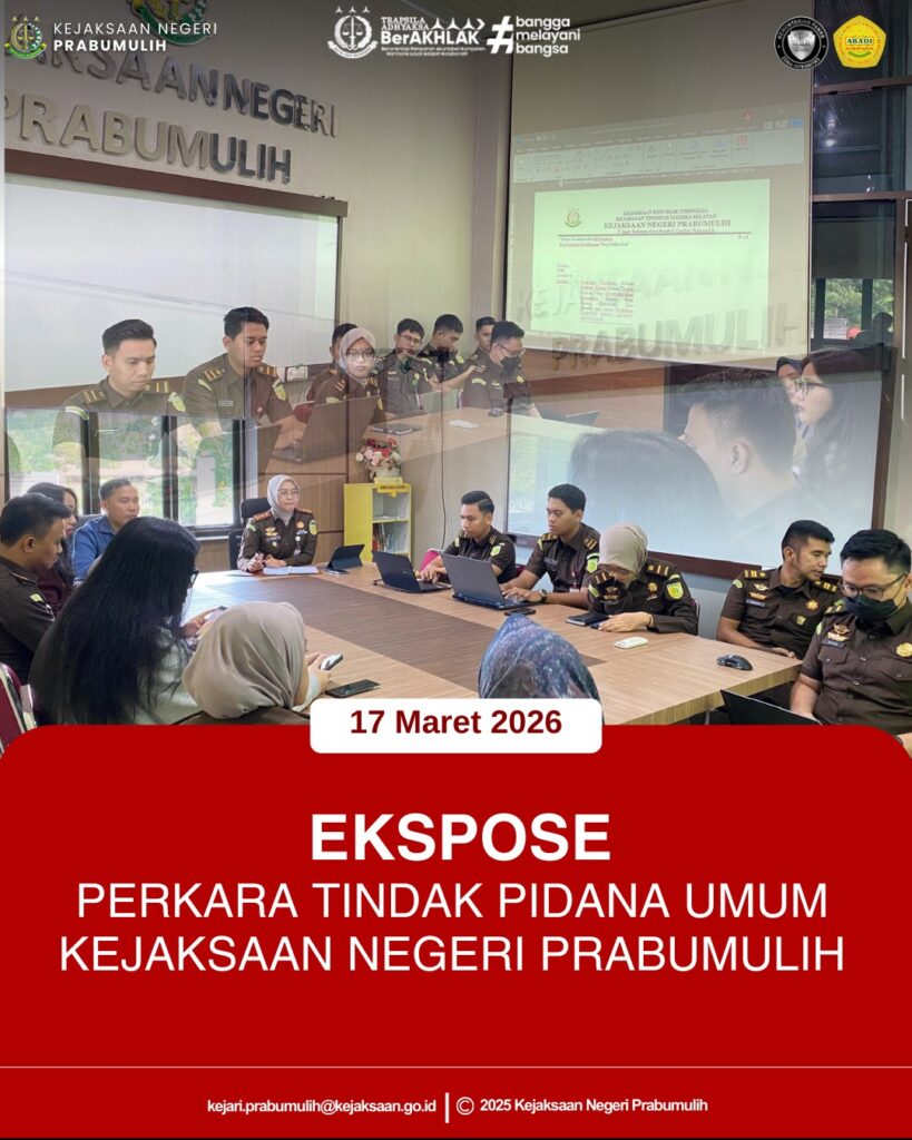 Kepala Kejaksaan Negeri Prabumulih Ibu Asvera Primadona, S.H.,M.H., bersama Kepala Seksi Tindak Pidana Umum Bapak Mirsyah Rizal, S.H.,M.H., beserta seluruh Jaksa pada Kejaksaan Negeri Prabumulih melakukan Ekspose Perkara Tindak Pidana Umum yang sedang ditangani oleh Kejaksaan Negeri Prabumulih.